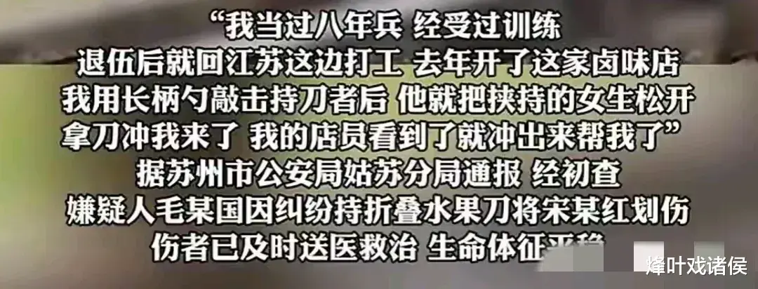 用他的话说,虽然当时看到对方拿着刀子,已经伤到女子,状态也有点癫狂,说不害怕是假的,但救人的念头胜过了害怕的念头。