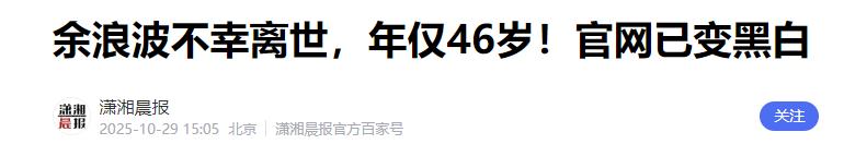 潇湘晨报《余浪波不幸离世,年仅46岁!官网已变黑白》