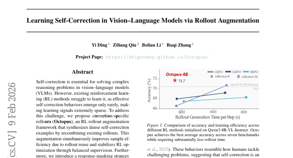 普渡大学的研究团队最近在这个领域取得了重要突破。他们开发出一种名为"Octopus"的训练方法,成功教会了视觉语言模型像人一样进行自我纠错。这个被命名为"章鱼"的系统不仅能够识别自己的推理错误,还能主动修正这些错误,就像章鱼用多条触手灵活应对复杂环境一样。