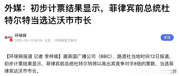 聊个很魔幻的点,去年,老杜在海牙监狱里,居然以8倍于对手的票数连任达沃市市长。