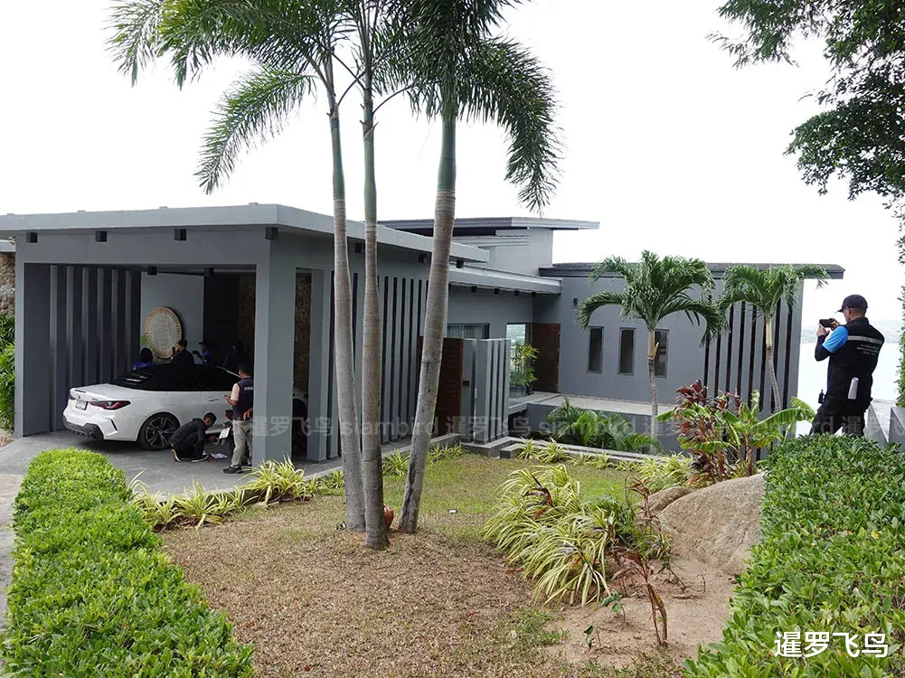 图:一外国家庭租住的豪华别墅遭泰国当局检查,该家庭称,他们并不知道该别墅是非法的。