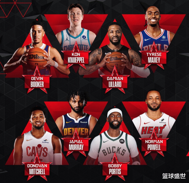 东部替补阵容:巴恩斯、杜伦、杰伦·约翰逊、米切尔、鲍威尔、西亚卡姆、唐斯;