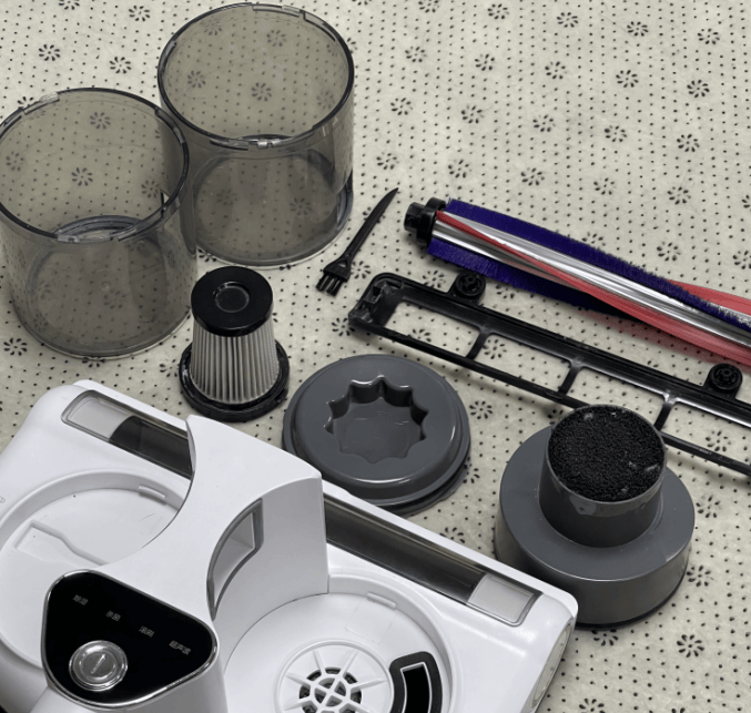在设计上也是非常贴心,采用 0.5L 透明尘杯 + 一键弹开设计,污物堆积情况直观可见,倾倒过程不脏手;还配备 了H12 级 HEPA 滤网,杜绝二次污染;同时机身净重 2.1kg,单手操作无压力,长时间使用不易疲劳。但是工作噪音约 76dB,对噪音敏感人群建议避开休息时段使用,机身的有线设计也只能适配小户型日常清洁,超大户型使用时需合理规划插座位置,提升清洁连贯性。