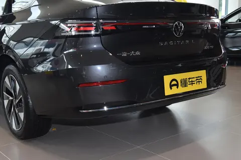不过我挺喜欢它的侧面线条,腰线和车门下方那条斜向贯穿的筋线设计,让整车看起来很有动感。隐藏式门把手和全新样式的轮毂设计也很加分,细节里透着时尚感。这种设计不仅让车身更流畅,还显得年轻、精神不少。总体来说,从外观来看,速腾L是在努力跳脱传统紧凑级轿车的框架,想打造成更年轻化、更有活力的家用车。