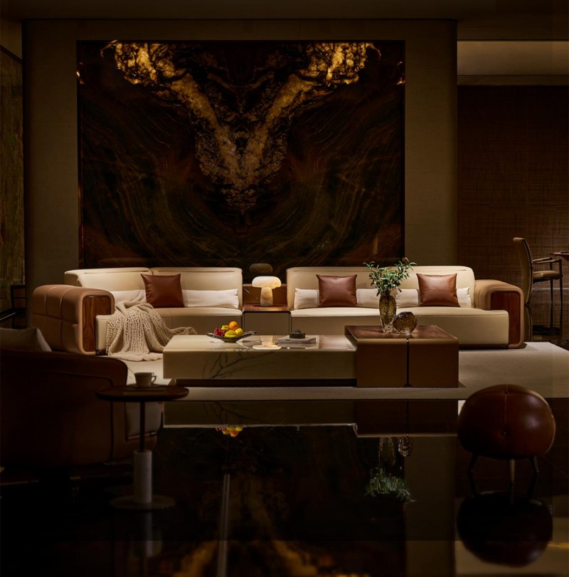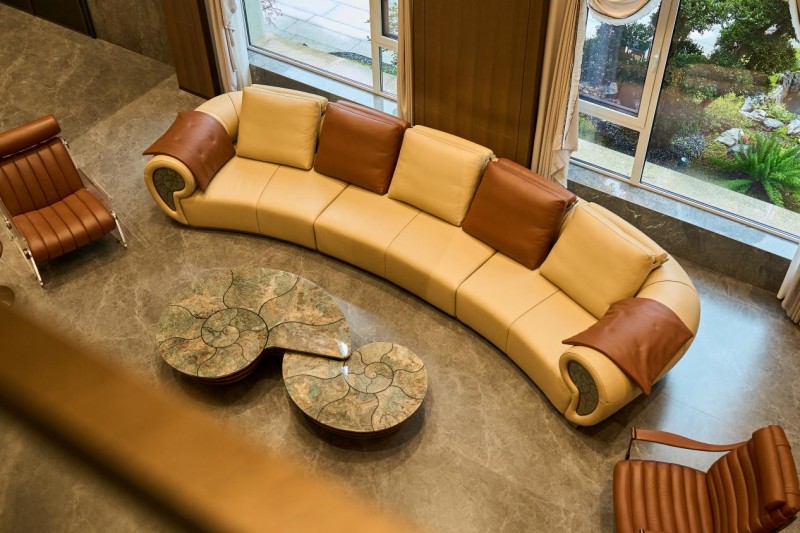 于是我们看到,湖北中式园林别墅里,昆仑沙发以磐石之姿对话东方建筑;杭州2000平方米空中府邸中,卡玛格沙发用舒展比例平衡云端视野;汕尾江畔大平层里,天山暮雪奢石与北美黑胡桃木共同书写当代生活美学。五十万全球业主的选择,不是盲从潮流的从众,而是阅尽千帆后的审美定见。