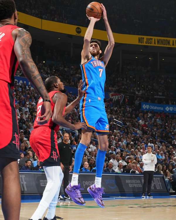 雷霆125-124击败火箭的比赛,切特-霍姆格伦17投11中,非常高效地砍下28分。切特的打法和杜兰特非常像,选秀模板就