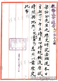 (梁启超在清华学校开设“历史研究法”课程之通告)