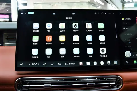 30英寸的AR-HUD是个实用配置,亮度达到12000尼特,就算在大太阳底下也能看得很清楚。导航信息直接投射到前挡风上,路口转弯提示特别直观,不用频繁低头看屏幕,开车时更安全。车机支持多品牌手机互联,苹果和安卓用户都能轻松连接,稳定性不错,不会出现中途断连的情况。16扬丹拿音响的音质表现很出色,扬声器面罩用了“湖心明月”的设计理念,圆形造型搭配细腻纹路,听觉和视觉都有不错的体验。副驾娱乐屏支持独立观影,长途出行时后排乘客也能靠影音娱乐打发时间。