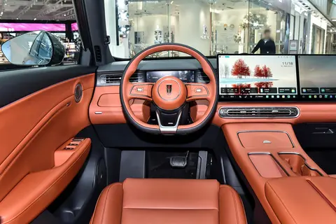 打开车门能感受到“东方颐和”的设计理念,不是堆料的豪华,而是透着居家的暖意。双拼色内饰有红色和白色可选,红色热情白色清爽,满足不同家庭的喜好。仪表台和门板摸上去都是软质材料,不会有廉价的硬塑料感,水晶饰件和金属饰条点缀得刚好,不浮夸但有质感。空间是这款车的核心优势,4925×1970×1740mm的车身尺寸,配合2925mm的长轴距,做成大五座布局后特别宽敞。前排调整到合适驾驶位,后排腿部空间能超过两拳,1米85的成年人坐进去也能轻松跷二郎腿,纯平的地板设计让中间乘客不用蜷腿,全家出行都能坐得舒服。