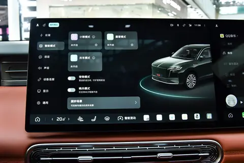 智能座舱没玩花里胡哨的功能,全系标配15.6+15.6英寸2.5K双联屏,加上仪表屏形成四块屏幕联动,信息传递很高效。2.5K的高清分辨率让显示效果特别细腻,导航地图上的小路标都能看得清清楚楚。核心芯片用的是高通8295P,搭配红旗自研的灵犀车机系统,操作起来特别丝滑,切换界面、打开应用基本没有延迟。语音控制很灵敏,支持四音区识别,后排乘客说打开空调24度或者导航到最近的服务区,系统都能快速响应,不用特意提高音量。空调出风口设计成“叠石理水”的样式,转动调节旋钮时很有质感,细节处能看到东方美学的用心。