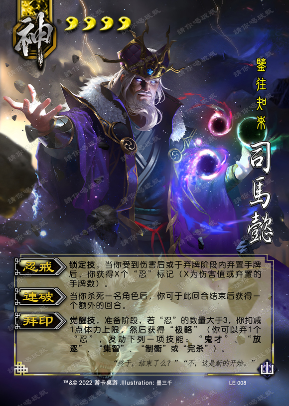 从技能组中就能看出,这是三国杀第一次尝试打造一个全方位能力兼具的武将,神司马懿的设计可谓是相当全面完备,这是在当时的大环境下极其少见的。