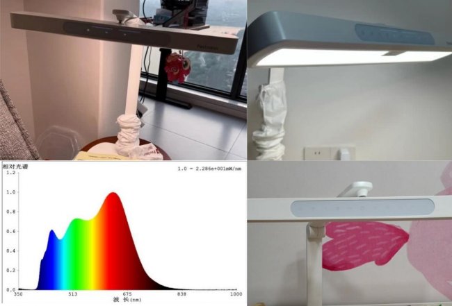 护眼设计方面:松下致儒的光源采用20.2cm侧发光面,光线均匀铺展,能覆盖大约180厘米的桌面,减少了局部暗区带来的视觉疲劳。在光效上,色温在3000K到5000K之间可调,暖光适合夜晚休息或放松,偏白光则有助于日间专注学习。它内置工作、休闲和夜灯三种模式,可根据不同场景灵活切换,让光线更贴合使用需求。但它采用蓝光激发全光谱技术,整体的光谱连续性一般,蓝光存在明显峰值,长时间使用在深度阅读下可能会稍微增加眼睛负担,因此护眼表现属于中规中矩,更适合普通日常阅读和学习。