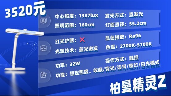 ✅ 护眼设计方面:柏曼精灵Z采用直径55.2厘米的大光源面,一次性覆盖整个桌面,有效减少局部明暗不均。光效方面,它的显色指数达Ra96,色温在2700K–5700K可调节,能满足不同学习或休闲场景的光线需求。