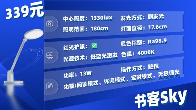 ✅ 护眼设计方面:书客Sky在百元价位段实现了技术突破,搭载的RRT2.0红光养眼和硬件级低蓝光技术,将415–455nm有害蓝光峰值抑制在0.6以下,同时通过红光补充促进视网膜微循环,实测可降低90%近视风险、缓解81%用眼疲劳。