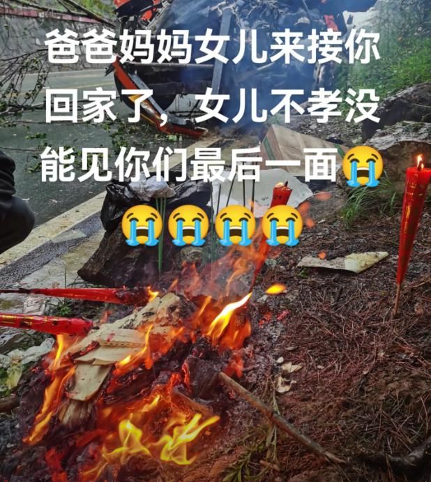从发声女子的账号来看,她在事发后,来到了现场祭奠自己的父母,给父母送去了纸钱等。