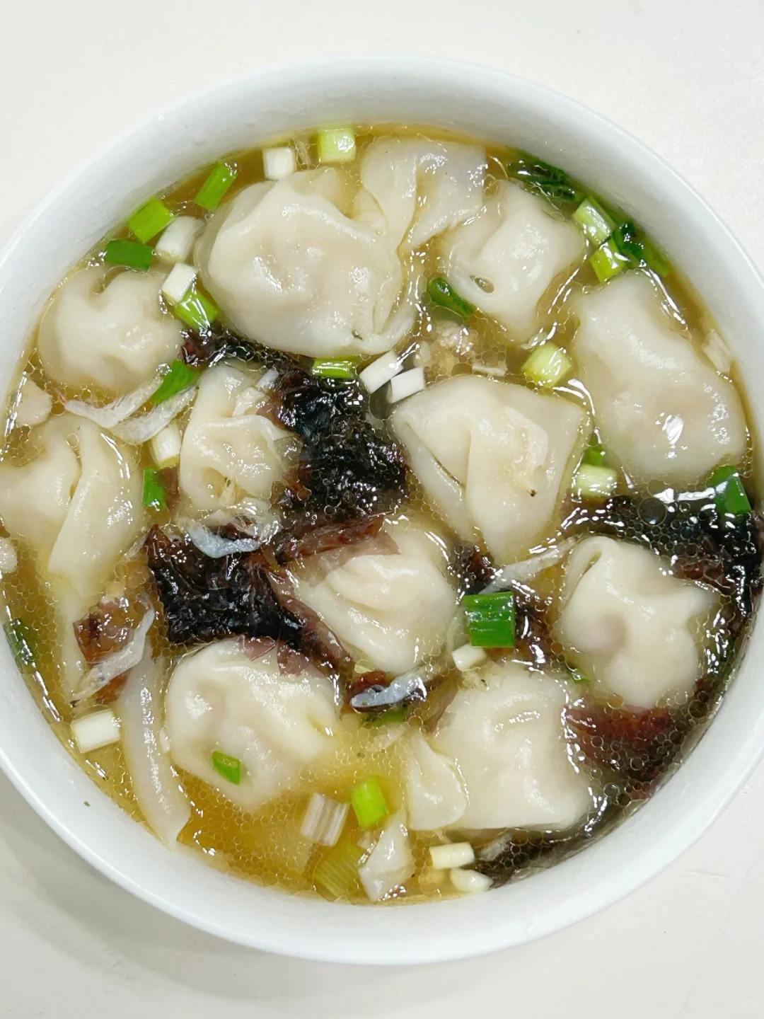 品其味:第一口咬开薄皮,馅心的汤汁在口中爆开,虾仁的弹嫩、肉末的软滑、笋丁的脆爽瞬间释放;接着喝一口汤,清鲜中带着胡椒的微辛;最后连汤带馄饨一口吞下,暖意在胃里慢慢散开,鲜得 “眉毛掉下来”。