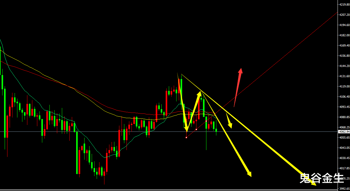 盘面上天图还是一个震荡,你要说看涨还是看跌,确实不好说,因为整体就是一个震荡;短周期昨日暴跌之后回抽,今日主要思路就是跟空,再加上美元指数的不断走强,所以今日先保持空思路即可,晚间非农如果破位4090--4100区间压力后,我们再去跟多;