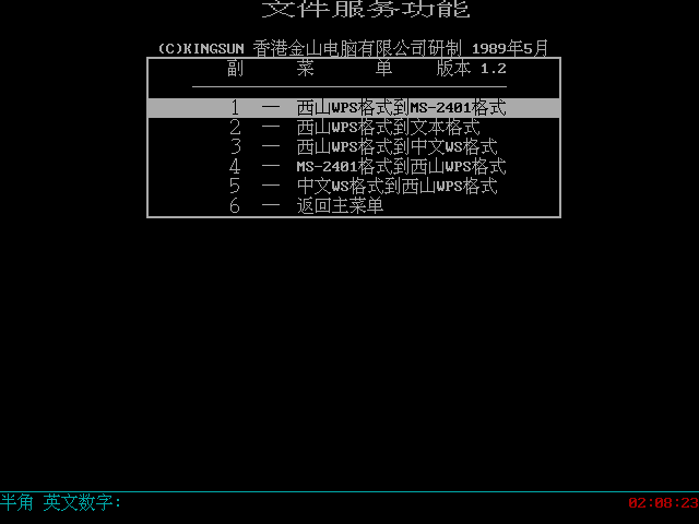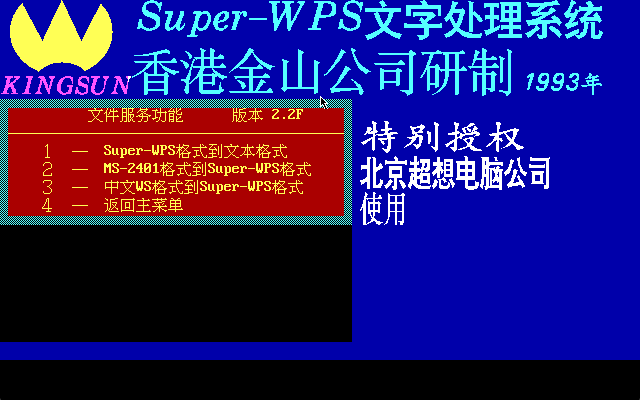 ▲WPS for DOS 2.3上的文件转换版本是2.2F。