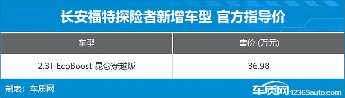 2025年11月6日,长安福特探险者昆仑穿越版正式上市,售价36.98万元。新车配备机械式托森后限滑差速器,并提供全钢底盘装甲、全地形AT胎等越野装备,动力部分依旧搭载2.3T发动机以及10AT变速箱。