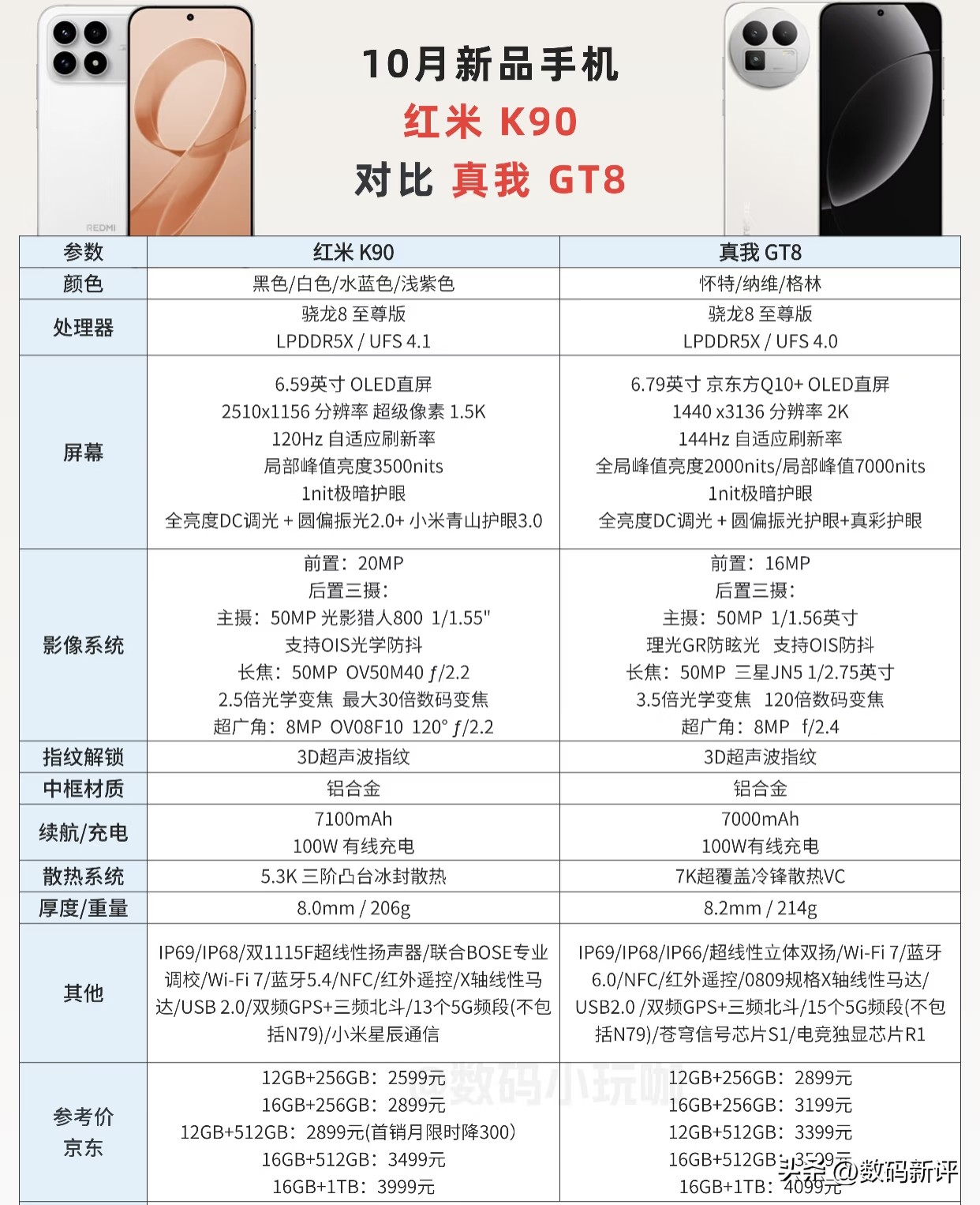 性能方面都是骁龙8至尊版,LPDDR5X和UFS4.1组合,都是1/1.56英寸级别主摄,以不变应万变[思考]挤牙膏,都是800万像素凑数超广角,电池容量一个7100毫安,一个7000毫安,具体续航时间得实测,也得看个人用机习惯,价格上肯定是红米有优势,低配便宜300,12+512GB版本目前便宜500!差价这么多的情况下自然是红米更香!