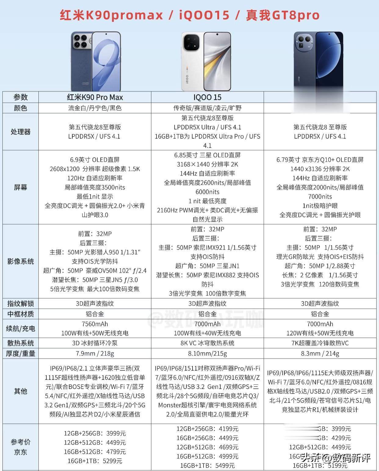 再顺带着把iQOO15列入对比,iQOO价格更高,但是销量也是这几款里最好的[灵光一闪]三星2K屏独一档!外围配置也是拉满,但是感觉实际配置iQOO和真我差距不大,三款机型真我是唯一的USB2.0旗舰机[笑哭]和findX9标准版一样,这点可能要留给下一代升级