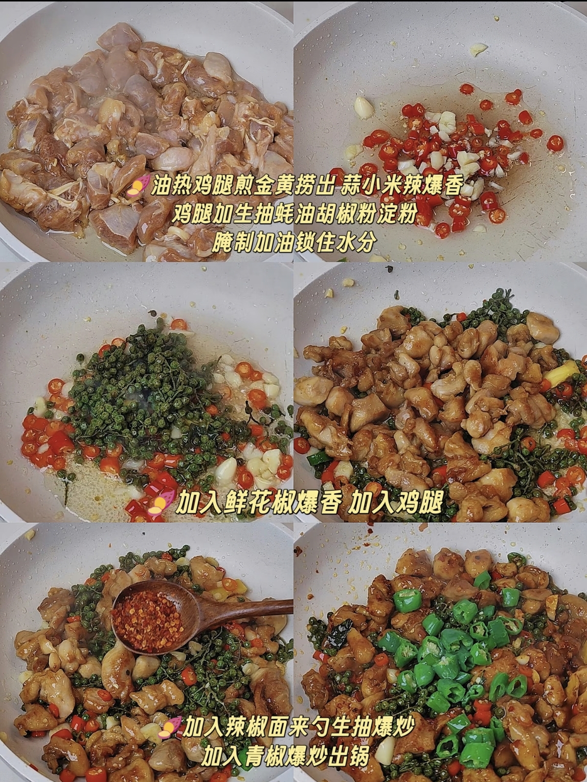 制作这道简单又好吃的鲜花椒鸡腿,关键在于选材和火候的把控。首先,我们需要准备两到三个新鲜的鸡腿,最好是带骨的,因为带骨的鸡肉在烹饪过程中能更好地保持鲜味和嫩度。将鸡腿清洗干净后,去骨切成大拇指大小的块状。切记,鸡肉要带皮,鸡皮在煸炒后会带来丰富的油脂香气,是这道菜风味的重要组成部分。