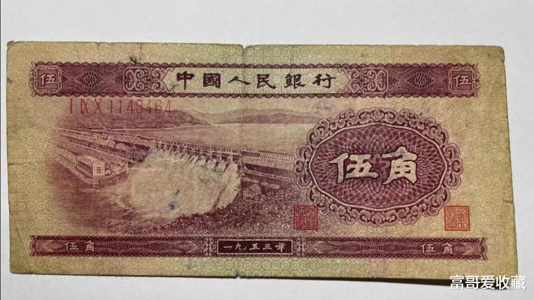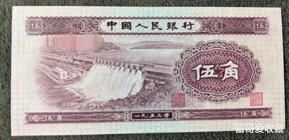 1953年的“5角纸币”,俗称:“水坝五角”,现在早已退出流通市场,因此市面上也是很少见到了。