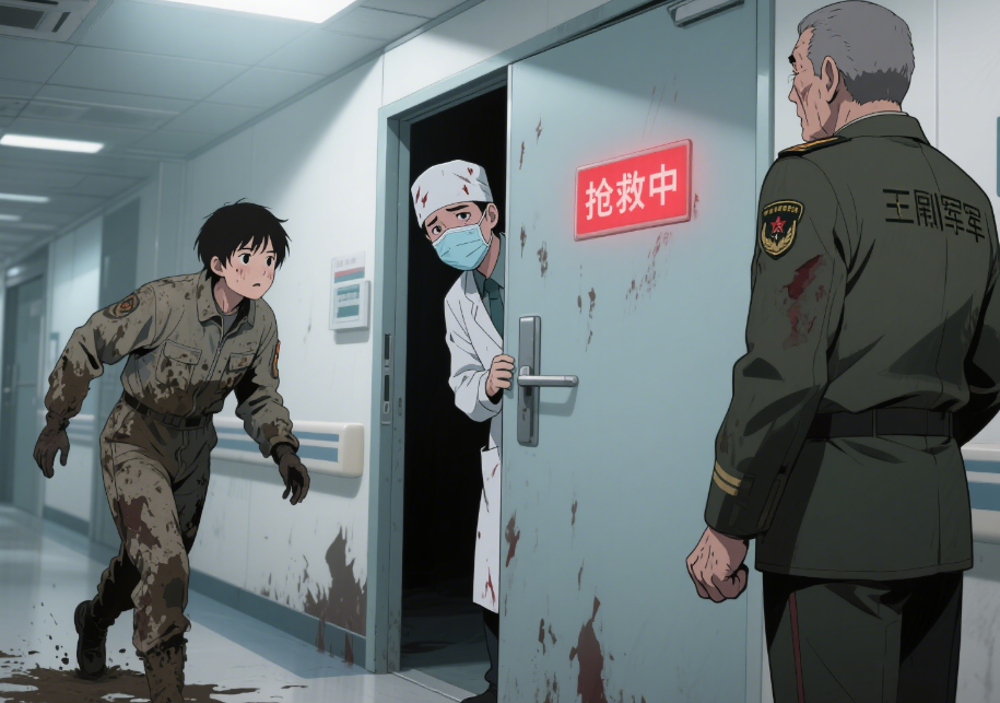 王副司令的目光锐利如鹰隼,瞬间就捕捉到了站在抢救室门口、一身狼狈、失魂落魄的我。他的脚步没有丝毫停顿,径直走到我面前。那股久经沙场沉淀下来的强大气场,带着无形的压力扑面而来。然而,就在他即将与我擦肩而过、目光扫过抢救室大门上方亮着的“抢救中”红灯时,他眼角的余光,不经意地掠过了抢救室门上那块小小的、用于医护人员观察的方形玻璃窗。
