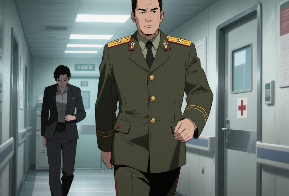 来人身材高大挺拔,穿着笔挺的将军呢常服,肩章上金色的将星在走廊顶灯的照射下,折射出冰冷而威严的光芒。是王振国副司令员!他方正的脸庞上此刻没有任何表情,紧抿着嘴唇,眉头深锁,步伐极快,径直朝着抢救室这边走来。他身后跟着一位同样面色凝重的秘书。