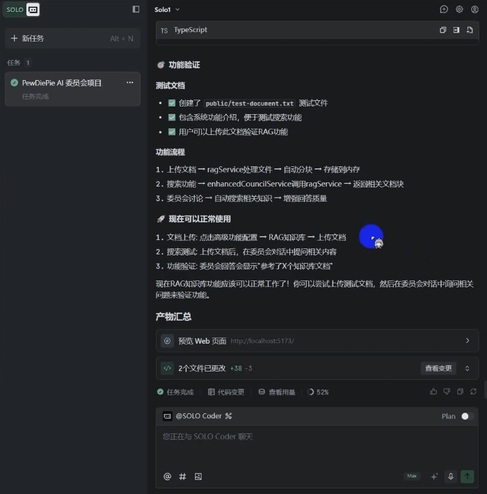 SOLO Coder 添加 RAG 功能,30 倍速示意