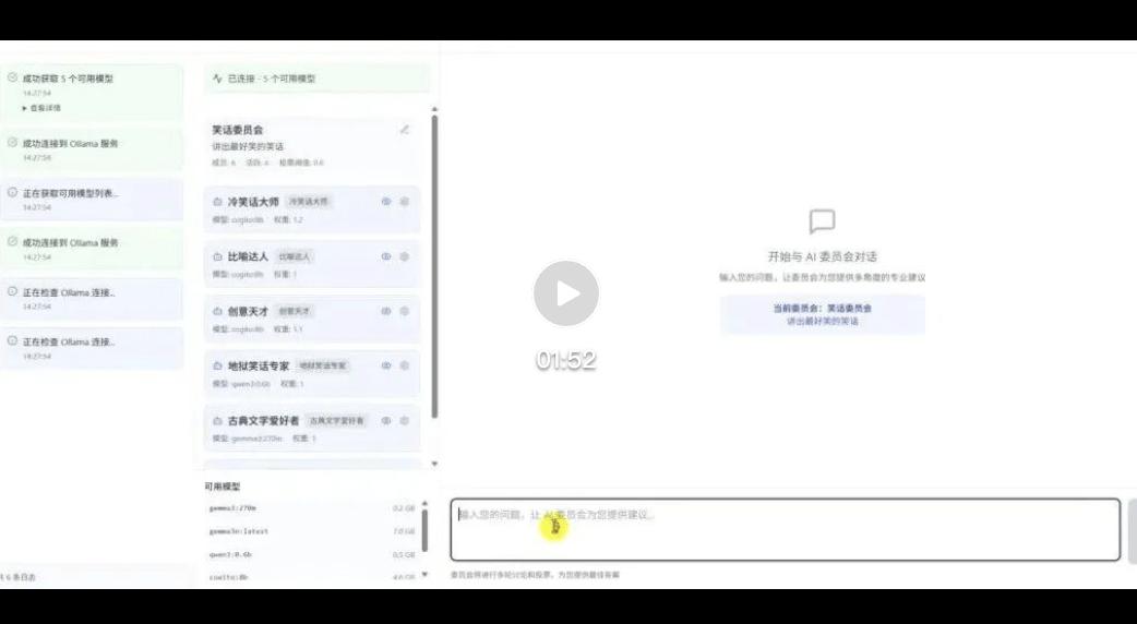 我们进行了快速测试,配置了一个 6 位专家的「笑话委员会」(包含冷笑话大师、创意天才等)。我们要求它生成一个关于 AI 的笑话。结果显示,委员会能够正常工作并投票选出最终答案。虽然笑话本身并不好笑(受限于本地小模型),但 TRAE SOLO 强大的「从 0 到 1」快速构建能力得到了验证。