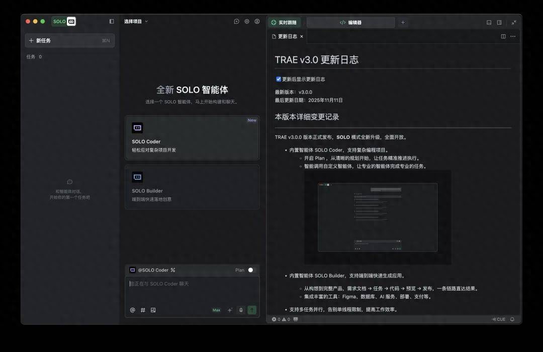 而 TRAE 3.0 ——SOLO 正式版的上线,则进一步走向系统化定义:The Responsive Coding Agent。