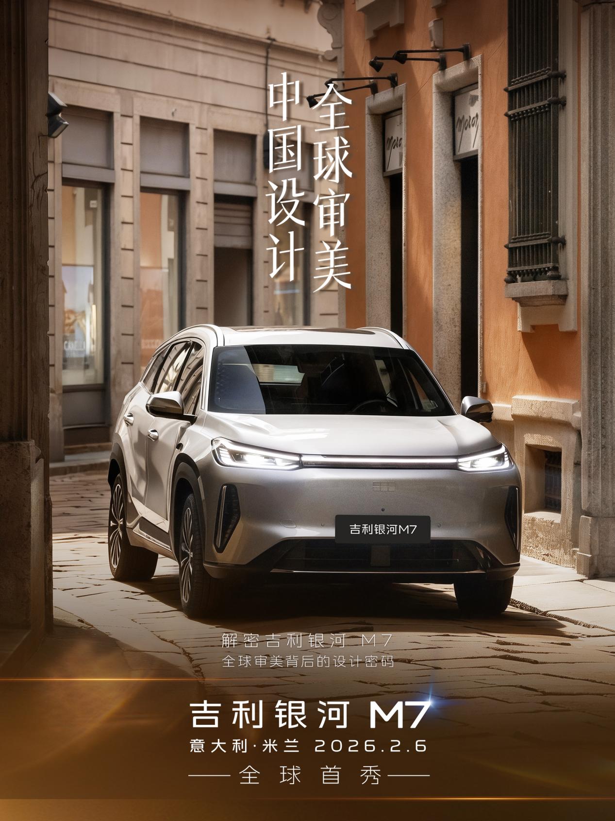家人们!中级SUV市场要变天了!2月6日,吉利银河M7在“世界设计之都”米兰全球首秀,作为银河M系列首款中级SUV,这款号称“中级SUV颠覆者”的新车,凭实力把性价比和豪华感拉到满,2026年上半年上市,想买家用SUV的一定要重点盯紧!