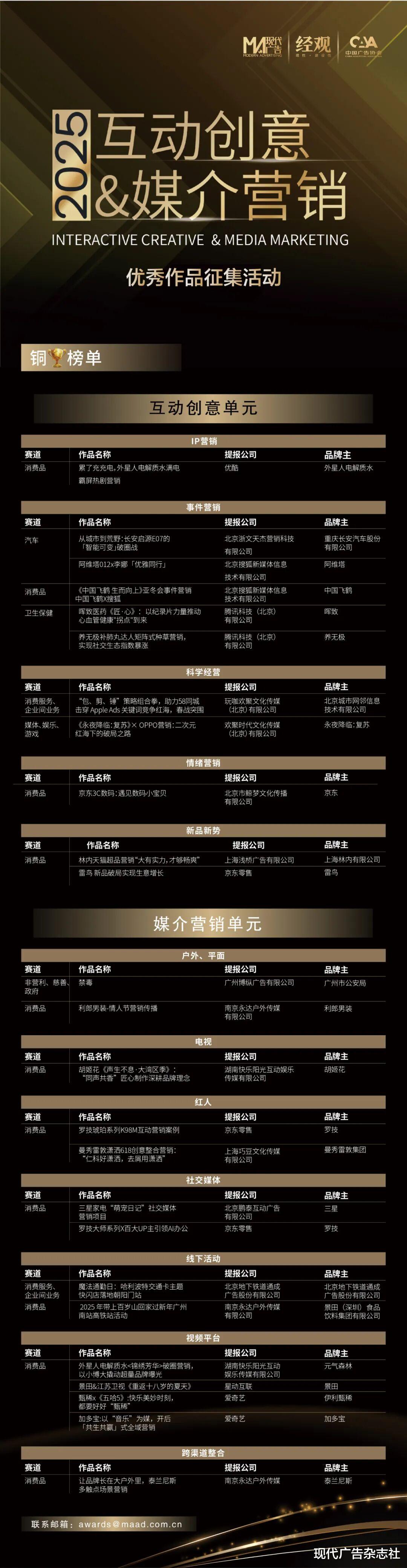2025互动创意&媒介营销优秀作品征集活动铜等级名单公布