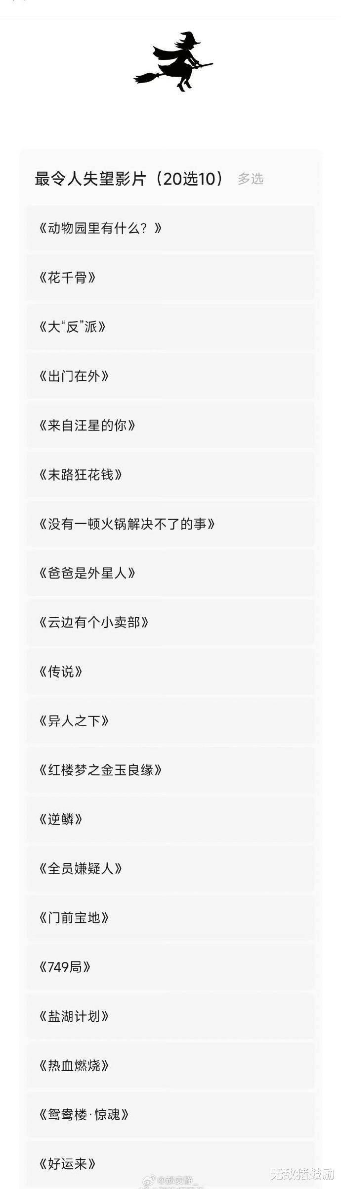 本次金扫帚奖共设置5个奖项,分别为最令人失望影片、最令人失望导演、最令人失望编剧、最令人失望男演员、最令人失望女演员。最终将产生最令人失望影片3部,最令人失望导演2名,最令人失望编剧1名,最令人失望男演员1名,最令人失望女演员1名,先看看最令人失望影片有哪些入选: