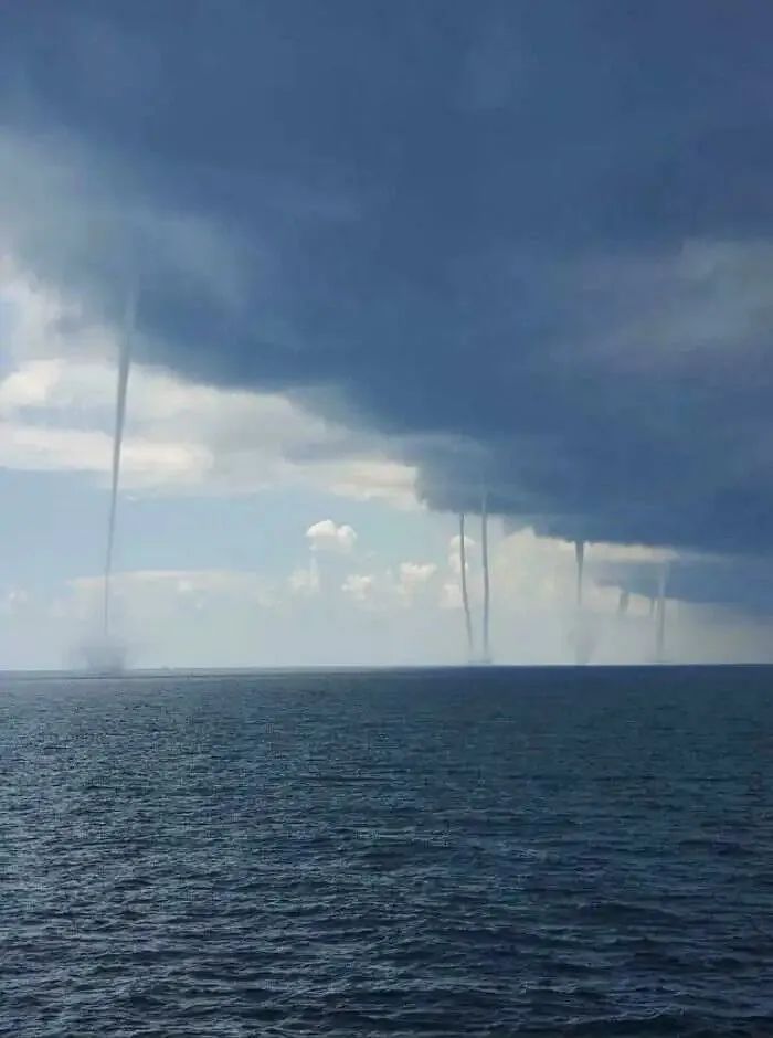 13.海面刮起的龙卷风,水都被吸到空中,形成水龙卷!