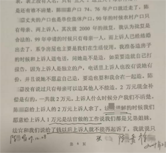 2007年的民事调解是维权路上的一个重要节点。陈某娟称,法官指出“1999年翻建申请表中无本人姓名无法主张份额”,其在不知情、情绪激动未作理性判断的情况下签字,仅获1万元补偿。且二审中,对方亦提及,法官曾私下协调对方,由对方拿出1万元,意在让陈某娟就此不再上诉。该协议陈某娟从未见过,代理律师也未审核,仅关注钱款到账时间,该行为是否公平合理?