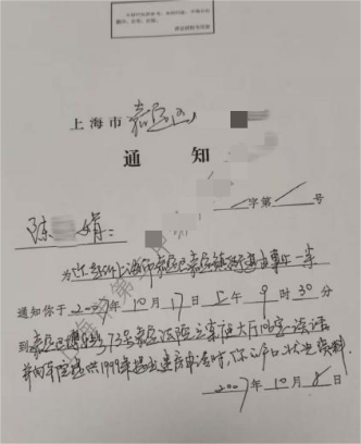 (2007年10月的法院约谈通知,当事人提供)