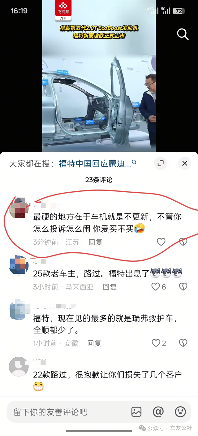 长安福特的声明发布后,车友公社第一时间联系了多位2022-2025款蒙迪欧车主,受访者均表达了强烈的不满与愤怒,认为厂家的回应缺乏诚意,充满敷衍与傲慢。
