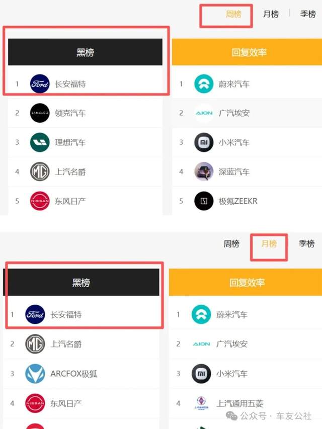 近日,长安福特因旗下蒙迪欧与锐界L车机问题引发的车主集体投诉,登上黑猫投诉汽车类黑榜周榜及月榜的榜首。