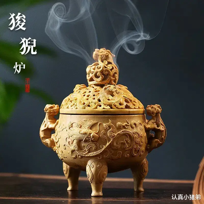 喜好烟火这一特点,让狻猊的形象经常出现在佛座上或是香炉上,当香炉内点燃香,盖上炉盖,就会呈现狻猊吞云吐雾的奇特景象。