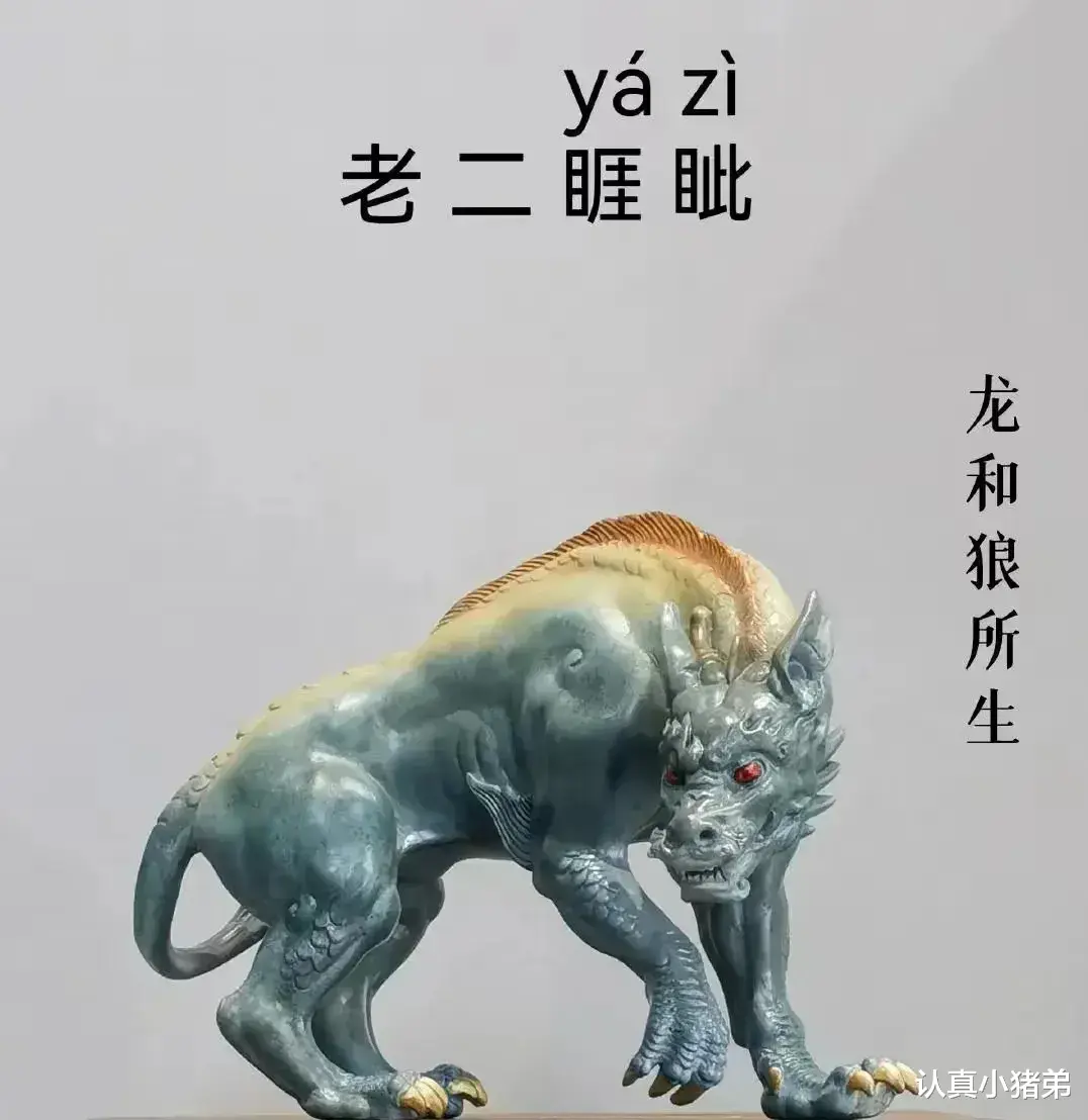 龙的二儿子叫做睚眦,他是和豺狼所生,长着龙头狼身,特别好辨认。性格暴烈,喜好杀戮,好勇擅斗眼神凶狠。