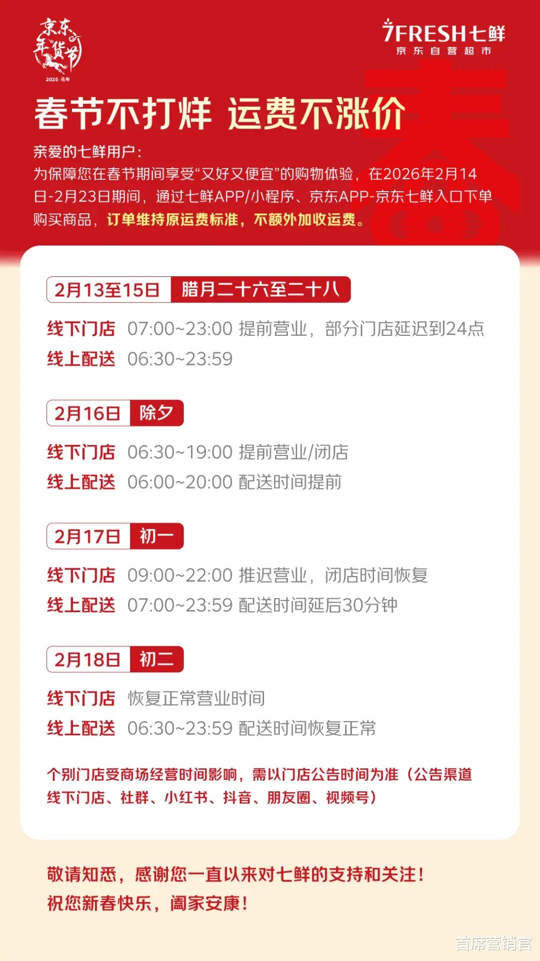 写在最后,在《新零售参考》看来,国内零售业自有品牌正迈入规模快速扩容的黄金发展期。对零售商而言,能否精准捕捉消费趋势、紧扣不同消费阶段的核心需求研发新品,直接决定了自有品牌产品的市场成功率,而产品的好评率与复购率,更是筑牢自有品牌长期发展的核心根基。过往商超的竞争多聚焦于渠道布局与价格比拼,而如今,自有品牌的产品创新力、场景适配力与消费者情感连接力,已然成为商超拉开竞争差距、打造核心壁垒的关键抓手。京东七鲜超市作为发力自有品牌的实践者与领跑者。其紧扣年轻消费群体的核心诉求,深度洞察马年年货消费健康化、场景化、情感化的趋势,从年夜饭加菜、健康礼赠到新春祈福三大核心消费场景出发,针对性研发自有品牌产品,让每一款自有品牌产品都兼具高质价比与强实用性。最后,我们也期待七鲜超市给消费者带来更多惊喜体验。让更多消费者一起,拿捏健康年味,解锁新年新美好。