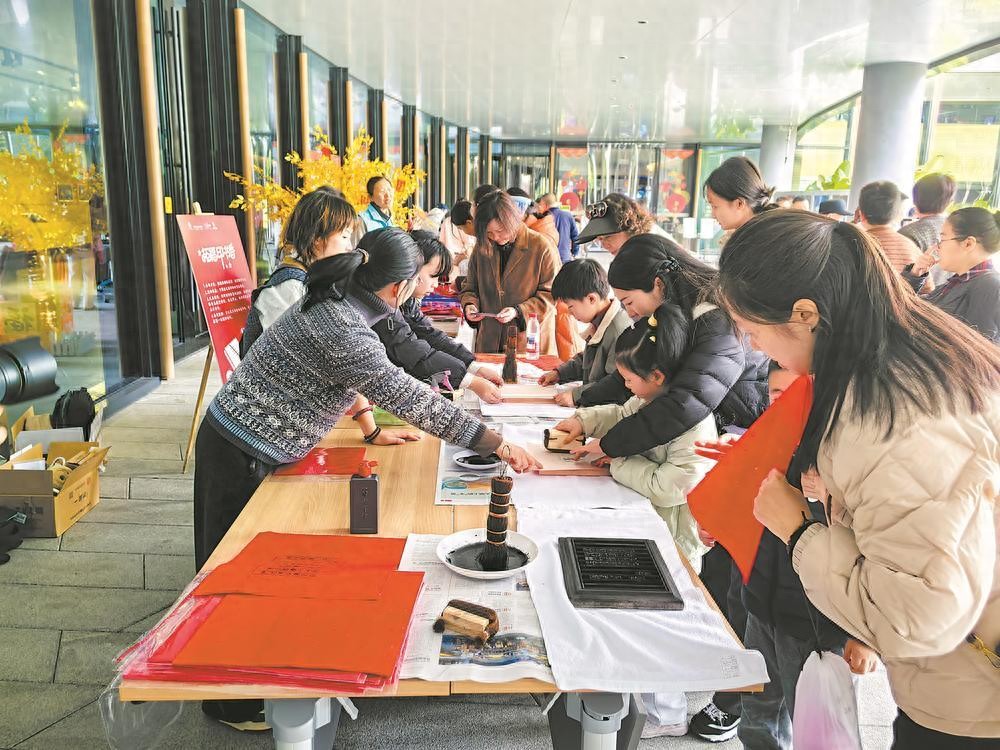 2月15日下午,成都图书馆主题分馆天府人文艺术图书馆里人声鼎沸,阅“马”迎春到·书香乐逍遥——新春游园活动在馆内热闹举办。“福树”之下,市民纷纷悬挂阅读心愿与读书感悟;拓印台前,“生肖马”“福”字等新春元素在宣纸上渐渐成形;糖画艺人手持铜勺,以马、书本、毛笔为主题,勾勒出甜香四溢的民俗韵味。当天,非遗寻趣・“马”上印福——雕版印刷术体验活动也在馆内国学研习馆举办,大家在专业老师的指导下体验国家级非遗“雕版印刷术”,亲手印制生肖马、福禄寿喜等春节喜庆图案。