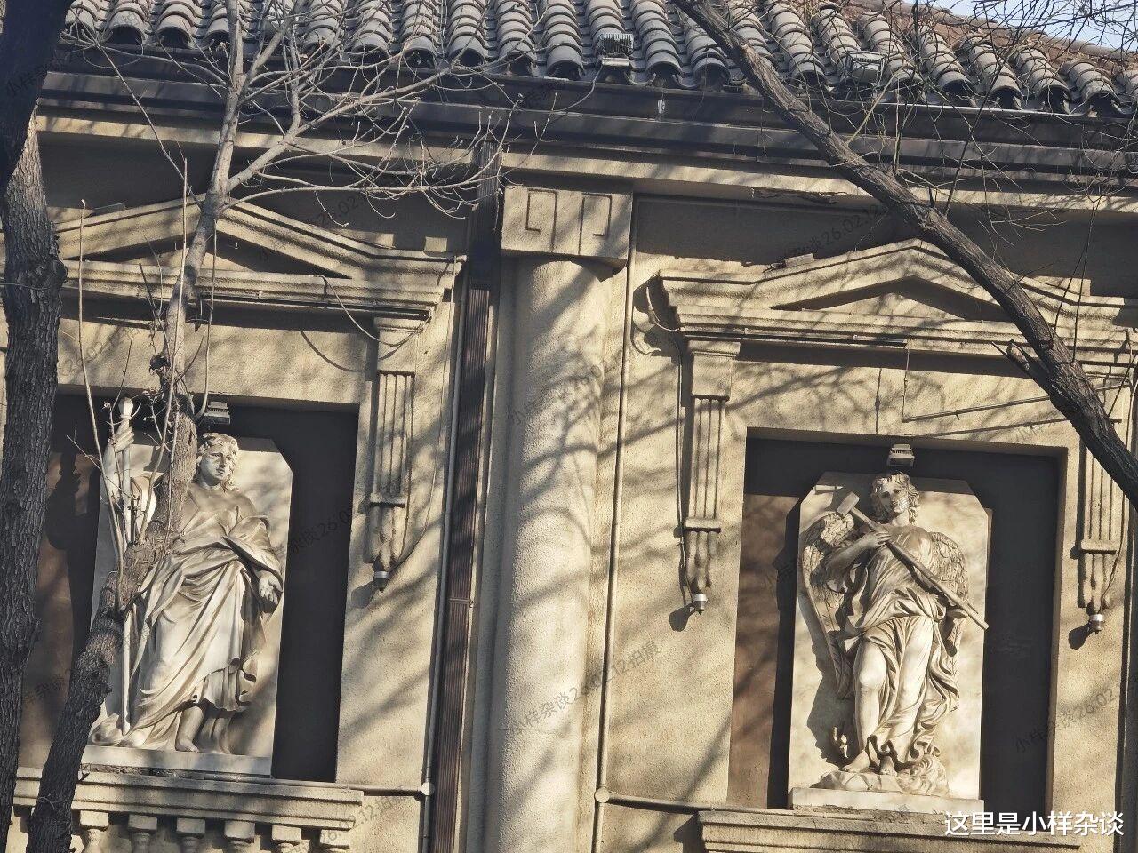 (2026年2月12日拍摄)厢房二楼的窗口位置雕刻了欧式的人物雕像。在主楼的西侧分布了四栋风格一致的二层别墅,都带有露天阳台,规模远小于主楼,但是也相当精致,当年是于济川的四位姨太太居住。