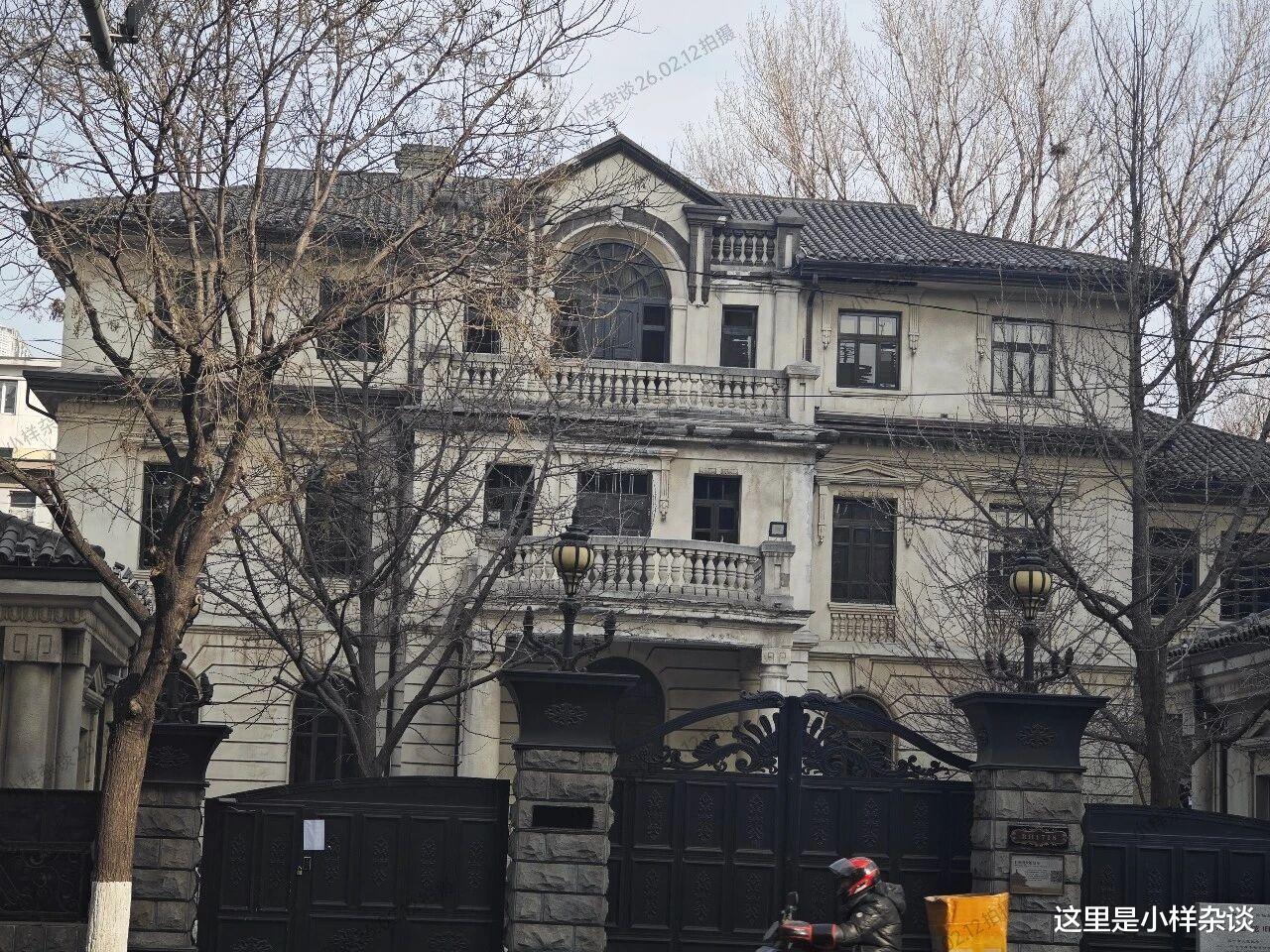 (2026年2月12日拍摄)这是一个非常大的院子,院子是一个精致的别墅群,由多栋二层和三层的别墅组成,主楼是一座法式建筑,平面是“凸”字形,非常的豪华。主楼的东西两侧对称式分布了厢房和门房。主楼门厅前有10级弧形台阶,一楼抱厦由四根水泥柱支撑。二、三层有半圆弧形阳台,各层设宝瓶式雕空栏杆。门窗为红木材质,楼梯扶手球状顶饰传为玉制。整体建筑典雅精致,是沈阳保存较好的法式老建筑。
