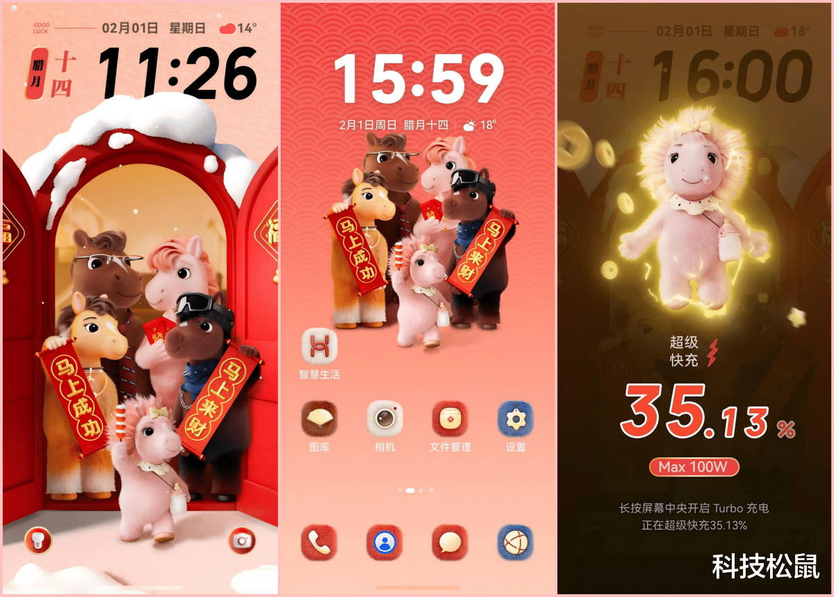 换上《马年全家福 贺岁》新主题后,每次我点亮手机屏幕后,老马一家五口跃上屏幕,给我献上马年最诚挚的祝福,情绪价值拉满。当然每个人的喜好不一样,主题市场还有很多马年新春氛围主题等你来选,比如这个《五福盲盒 马上开》主题也值得大家尝试,锁屏上这个“疯癫”的白马每次点开屏幕都能让我心情愉悦,就好像即将迎来新春假期的我,而且还可以抽盲盒,能够解锁福、财、寿、喜、禄五款不同的祝福锁屏,还有隐藏款“疯乐帅马”等你来开。还可以在桌面搭配各种各样的百变卡片进行自由DIY,随心搭配。让手机给你马上带来好运!