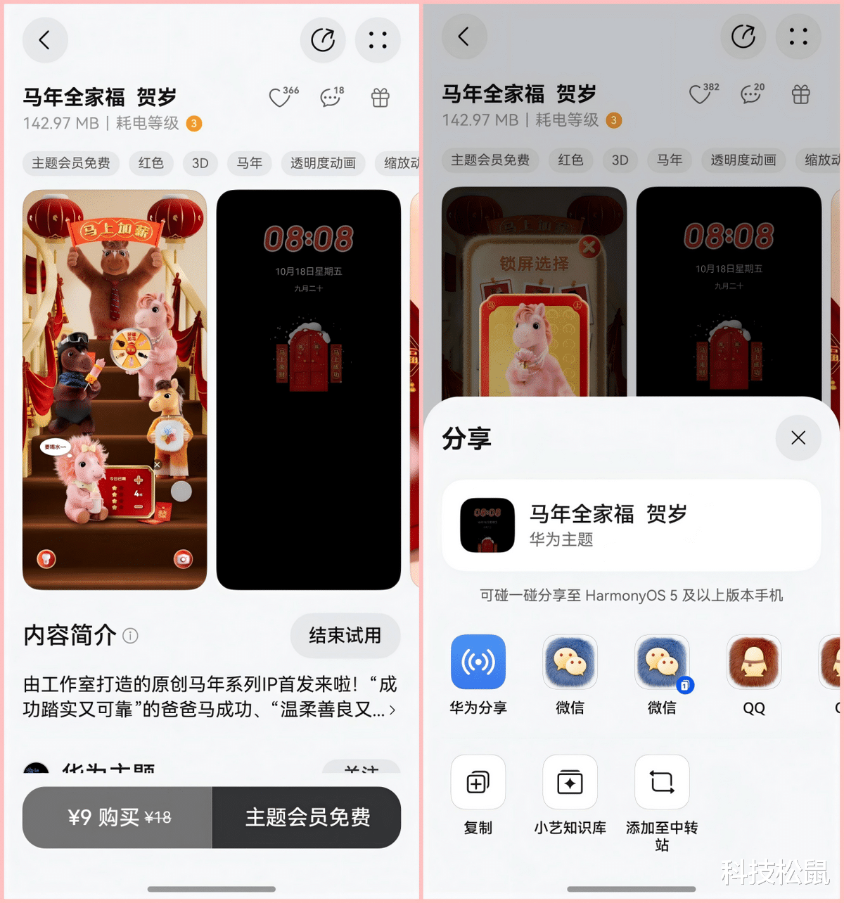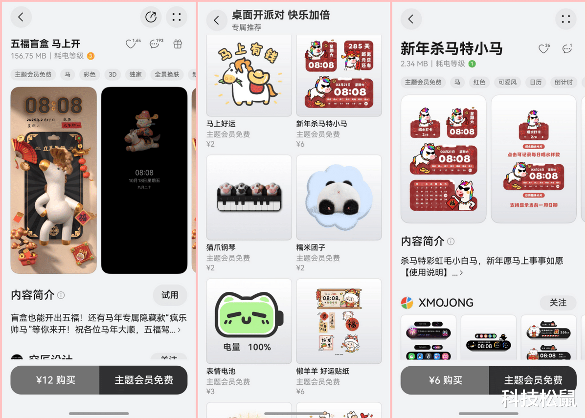 更让我惊喜的是,马年趣味主题都支持碰一碰分享、碰一碰赠送和跨设备互动。只需打开主题详情页面,点击右上角的礼物按钮,即可通过碰一碰分享给亲友,用户购买单个主题后,还可以碰一碰赠送给好友,让年味一键传递。使用同款主题的设备碰一碰,还能实时触发动效,比如一起放烟花等,传递幸福年味。