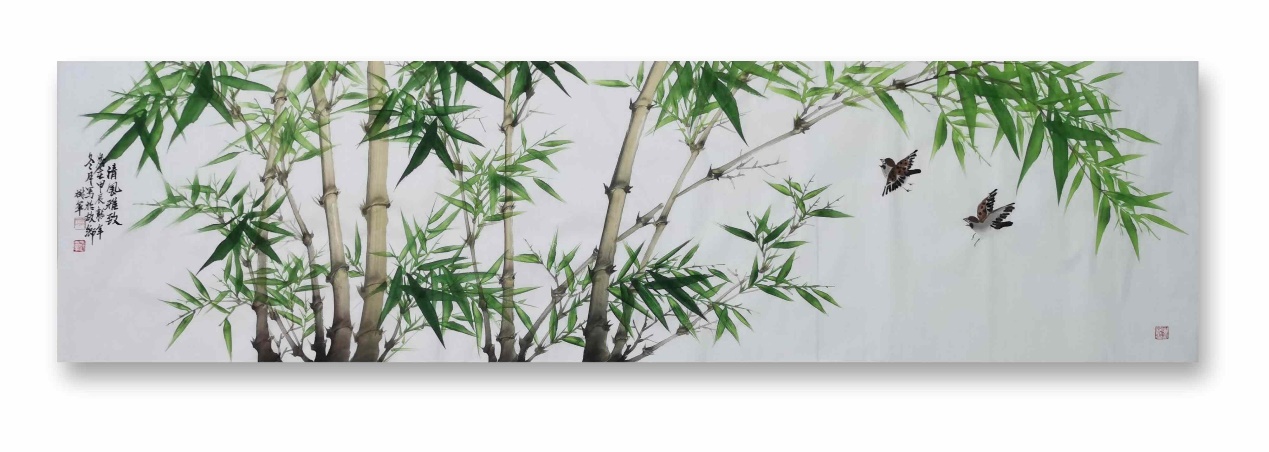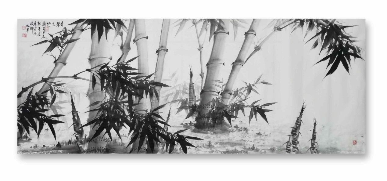 在文人画题材中,竹一直都是经久不衰的中心题材,正所谓竹者君子气,较之于牡丹的雍容,兰花的清秀,竹则是最能够体现出一位画家的精神气节,而这一点,也正是今日著名画家宫树军先生所极力推崇的画意境界。他自幼便学习探索郑板桥的画竹之法,后又拜于徐悲鸿弟子王相文先生门下,取法至今,一身画竹功夫可谓是相当正宗!每当执笔时,必先以陶冶性情为主,实乃得之于心而又应之于手,所以与其说这些画作是单纯的写意作品,倒不如说这是宫树军先生对自身品格和气节的真实体现,清刚雅正,涉笔成趣,画以载道,令人钦佩。