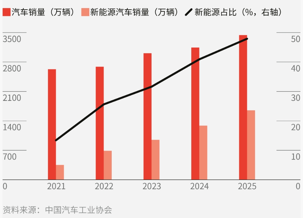 2021-2025年汽车销量及系能源车占比